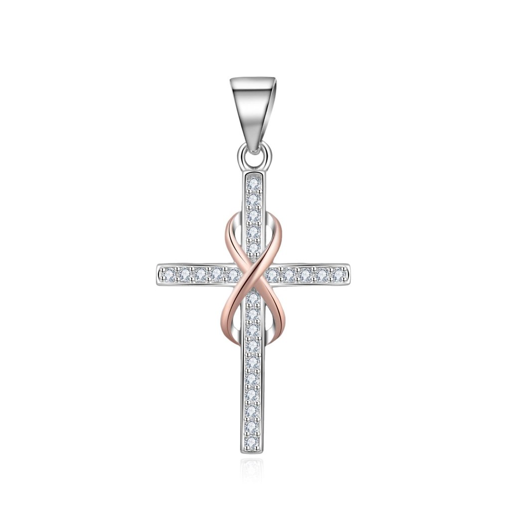 MOISS stříbrný přívěsek KŘÍŽ BICOLOR ROSE