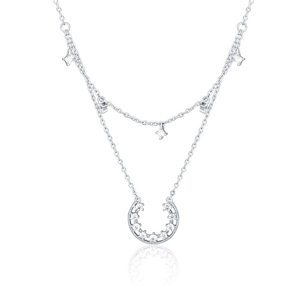 MINET Stříbrný náhrdelník měsíc s bílými zirkony
