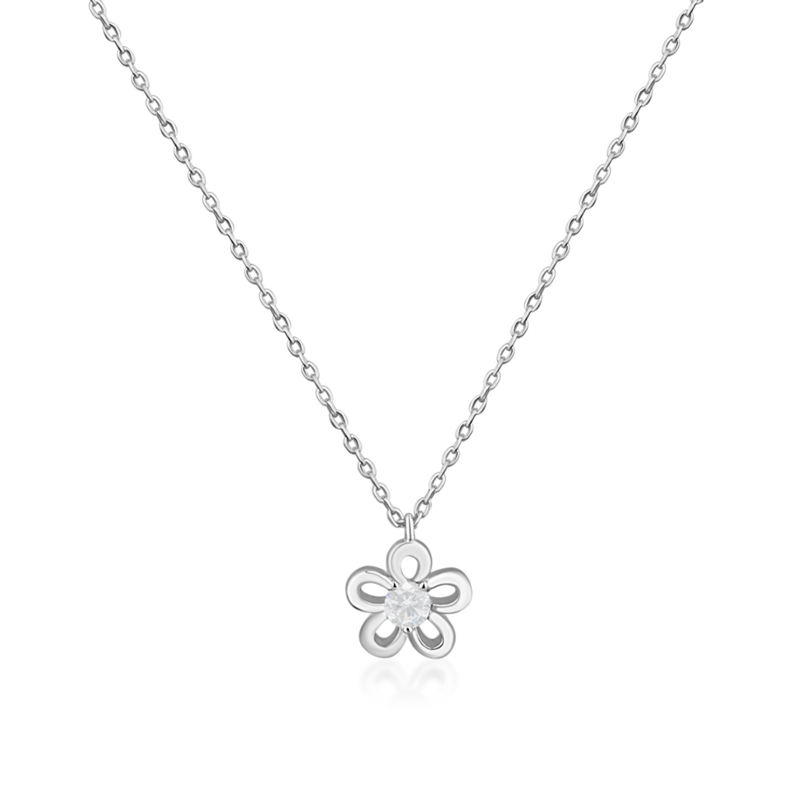MINET Stříbrný náhrdelník kytička s růžovým zirkonem
