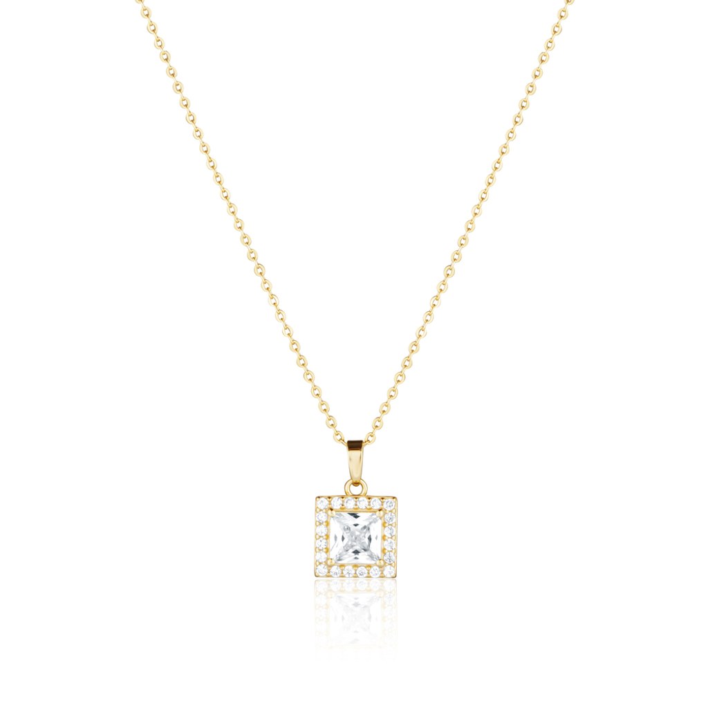MINET Decentní pozlacený stříbrný náhrdelník s bílým zirkonem