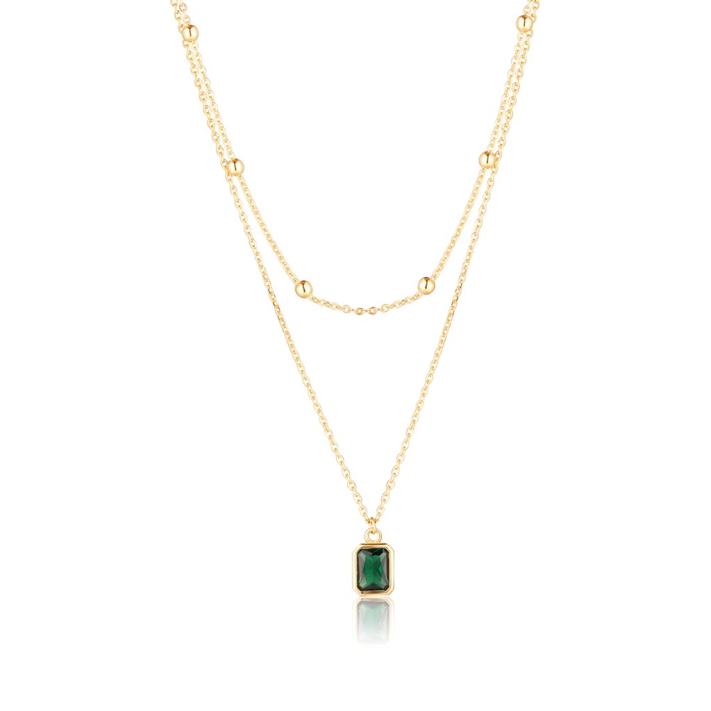 MINET Dvojitý stříbrný náhrdelník s bílým zirkonem