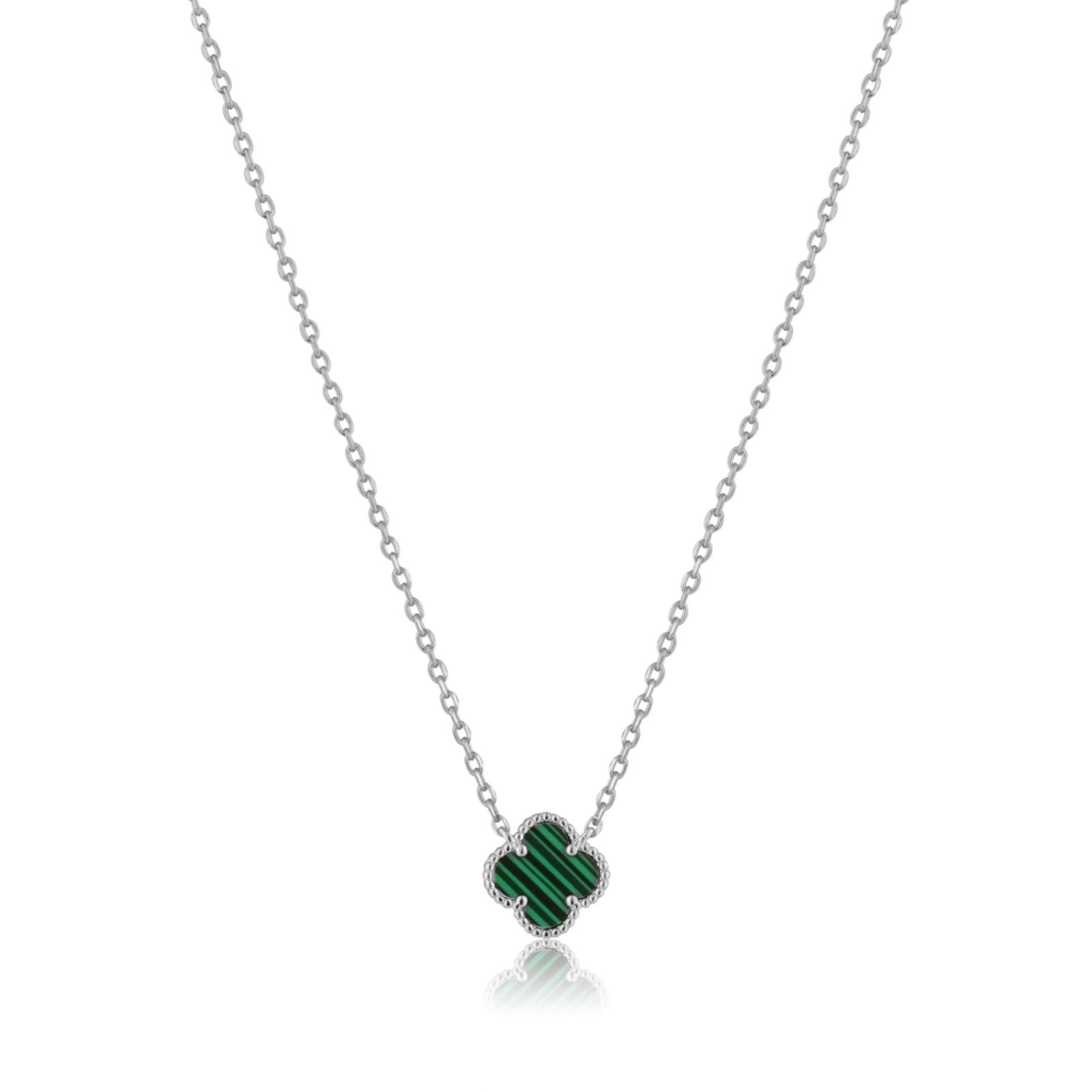 MINET Pozlacený stříbrný náhrdelník čtyřlístek s malachitem