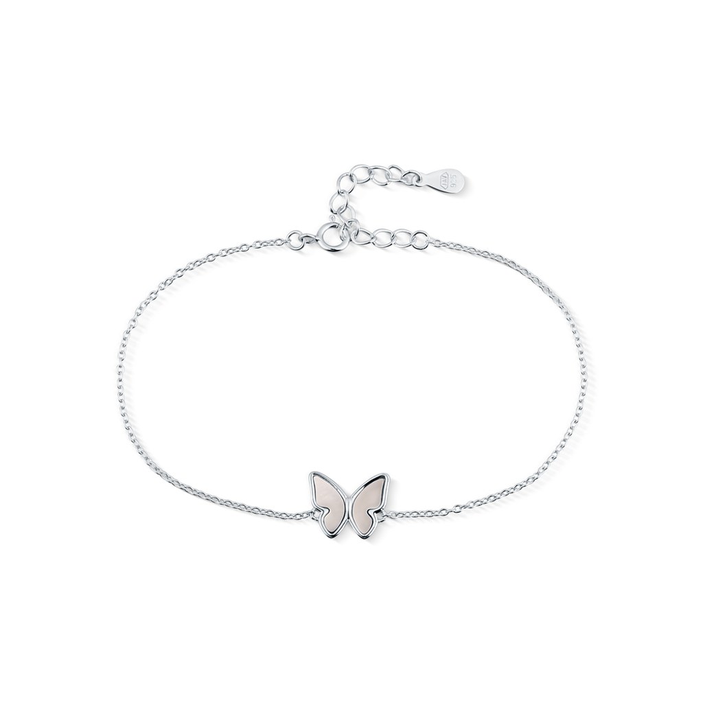 MINET Stříbrný náramek KYTIČKY s bílými opálky