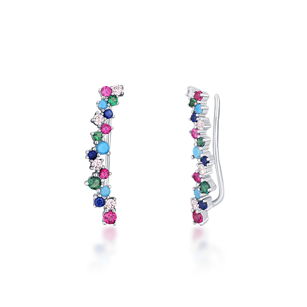MINET Luxusní stříbrné náušnice s bílými a zelenými zirkony