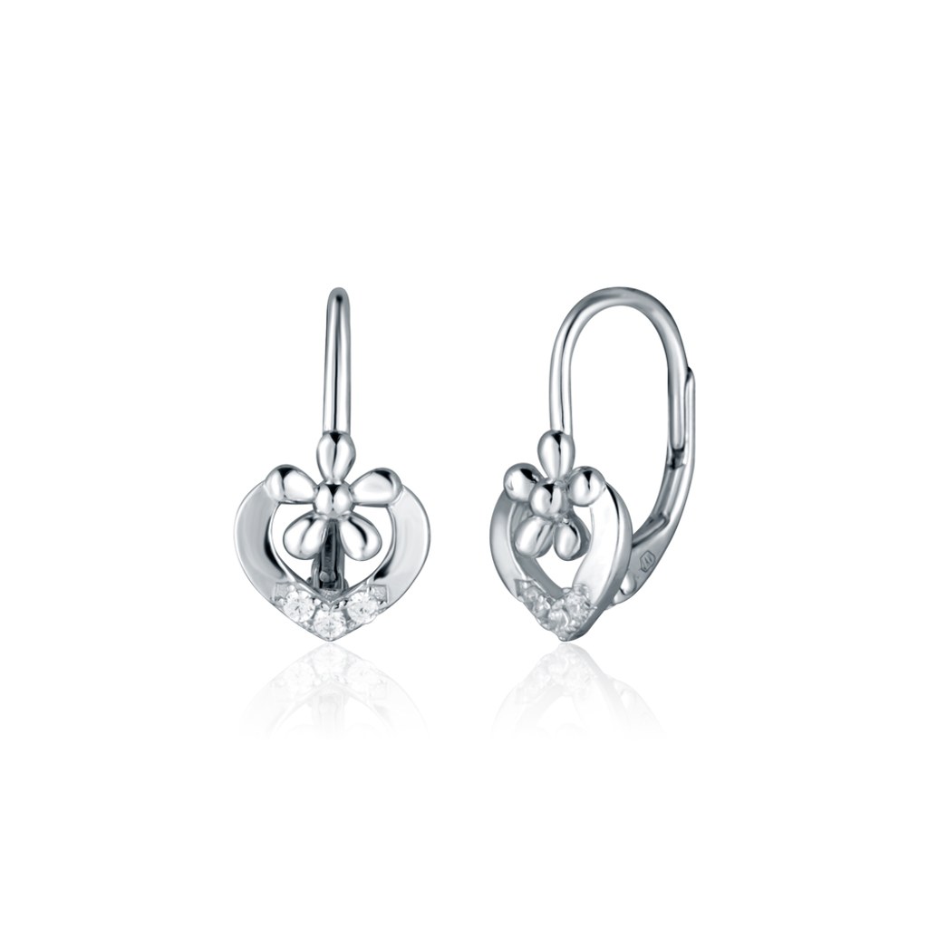MINET Stříbrné náušnice SRDÍČKA s bílými zirkony
