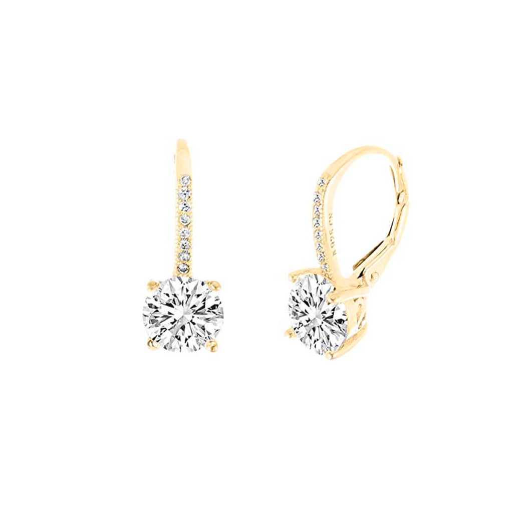 MINET Elegantní pozlacené stříbrné náušnice s bílým zirkonem