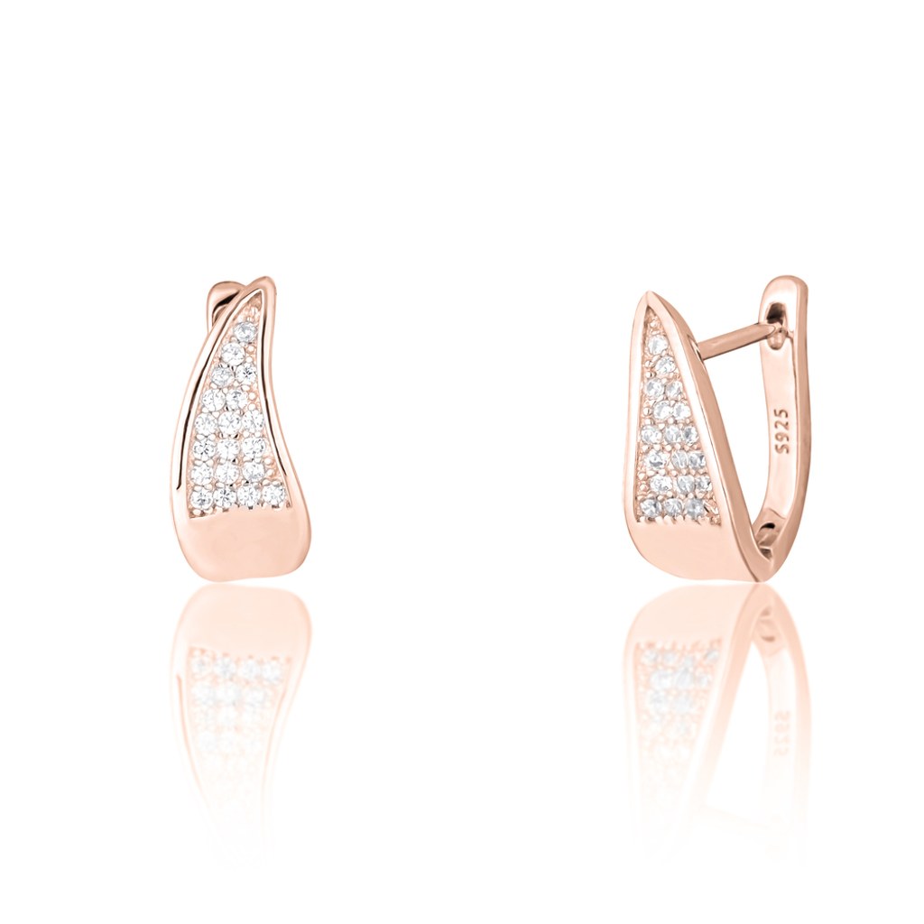 MINET Rose gold luxusní stříbrné náušnice s bílými zirkony