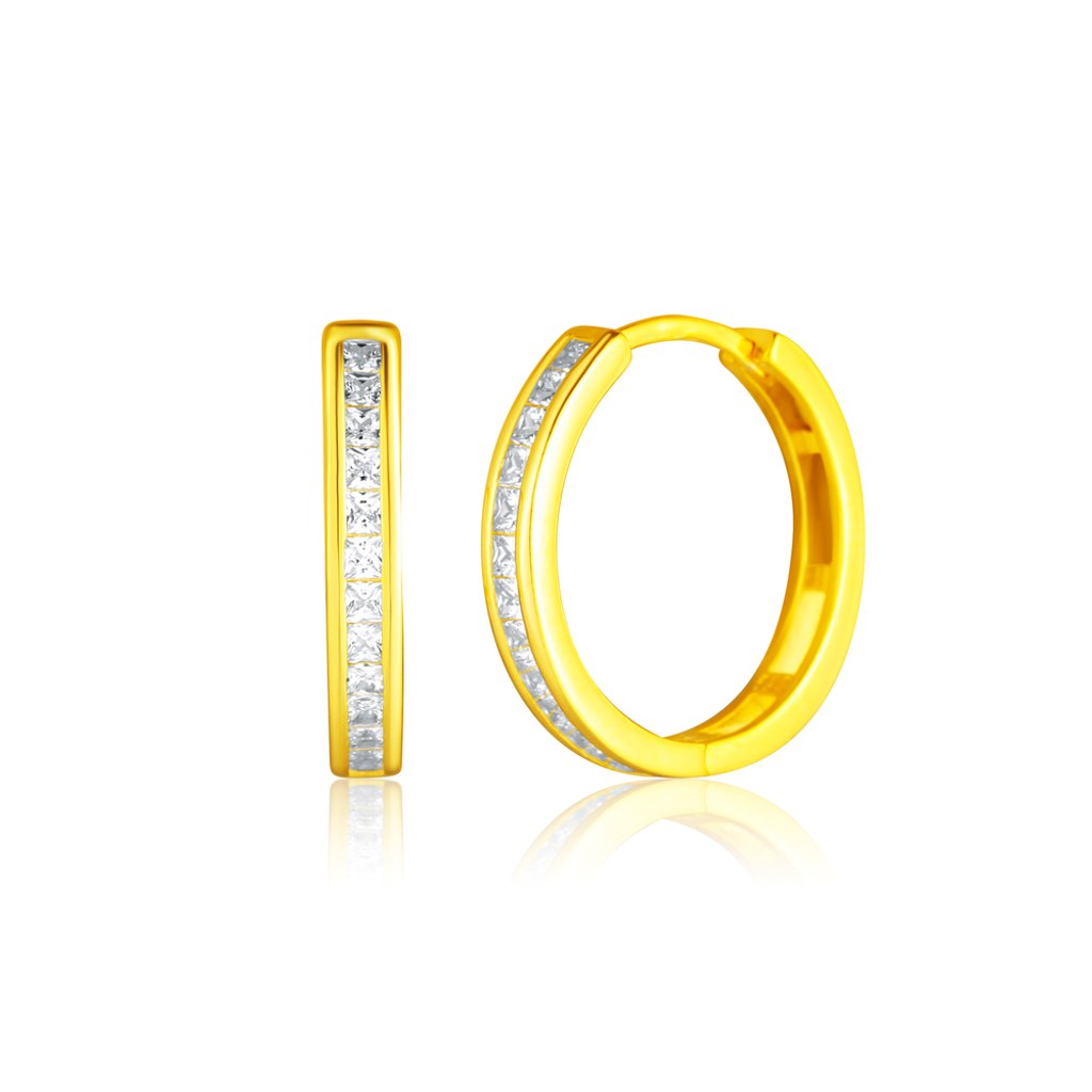 MINET Pozlacené stříbrné náušnice kroužky se zirkony