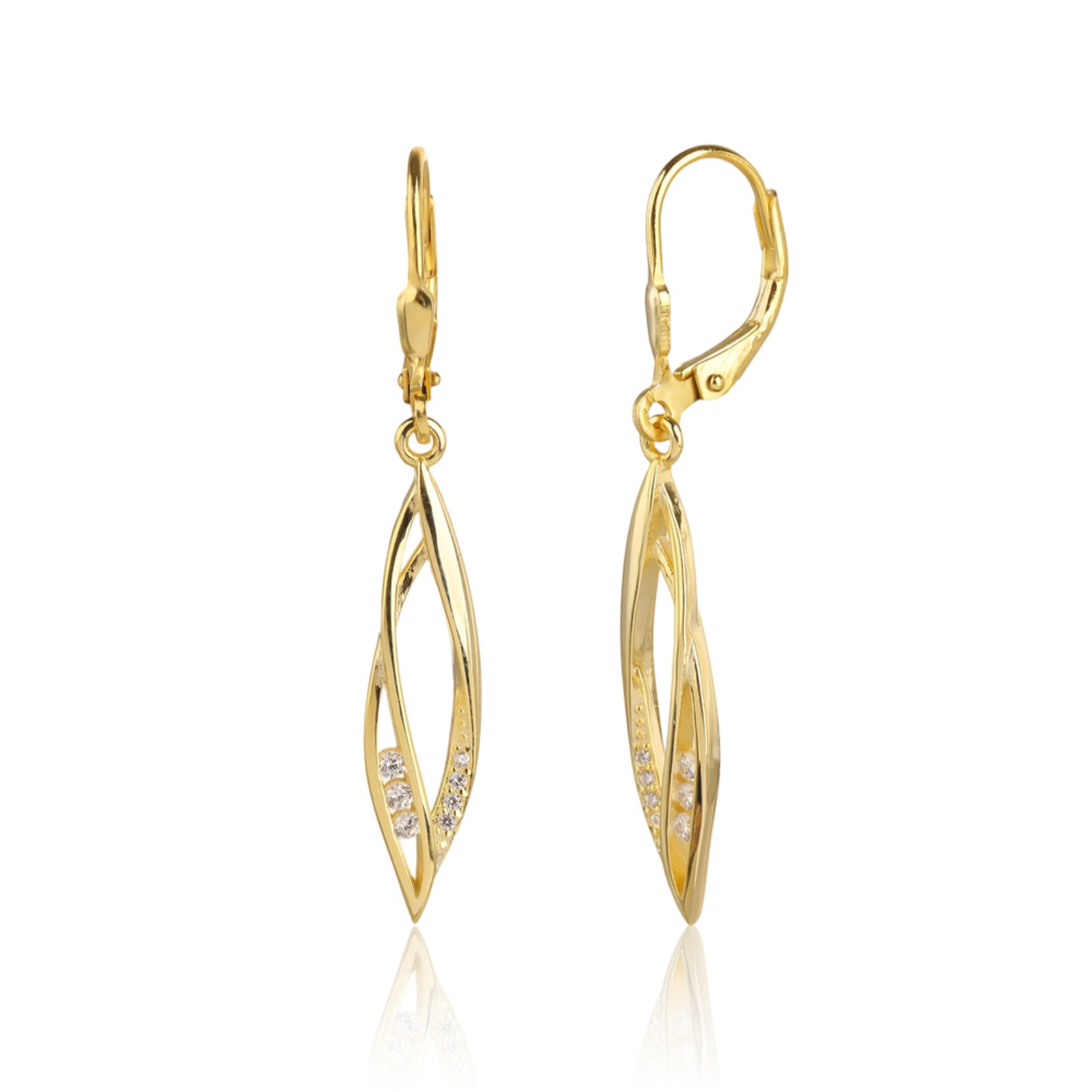 MINET Luxusní pozlacené stříbrné náušnice s bílými zirkony