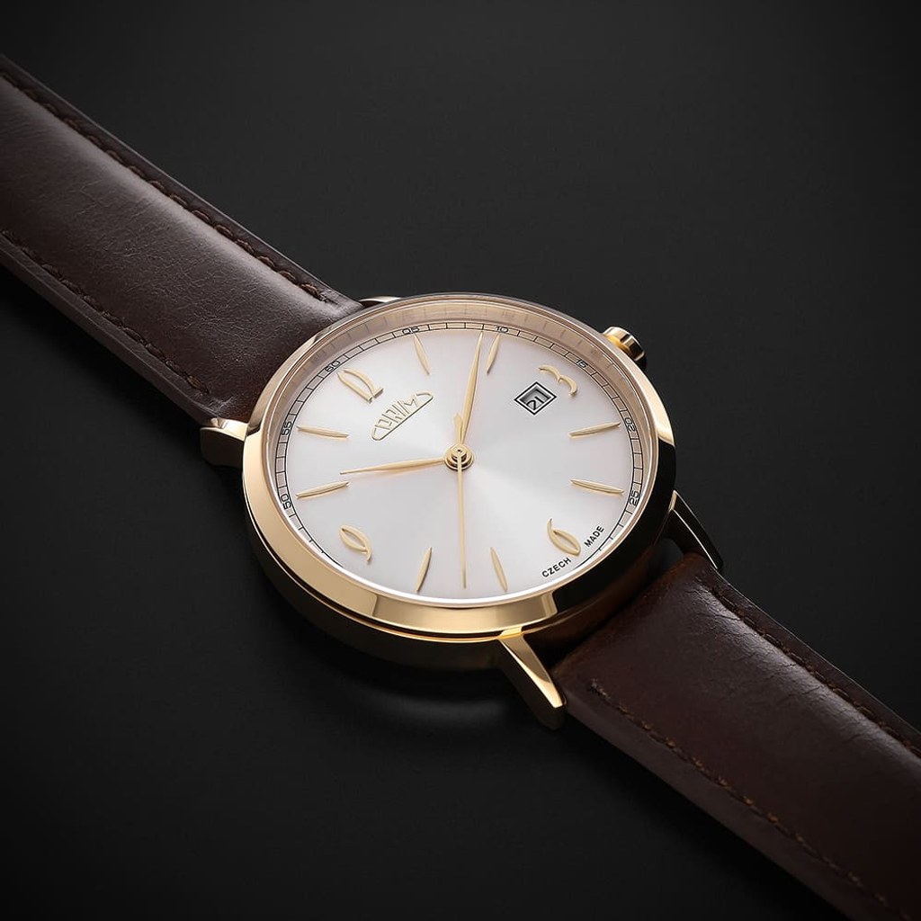 Atraktivní kombinace barvy pouzder a číselníků ve více variantách. Datum v barvě číselníku společně s jemnými indexy doplněnými číslicemi 3, 6, 9 a 12 akcentují minimalistické pojetí celého konceptu těchto hodinek a skládají poklonu českému hodinářskému světu. Na jejich designu se podílela mladá začínající, jejímž úkolem byla inspirace 60. léty minulého století.