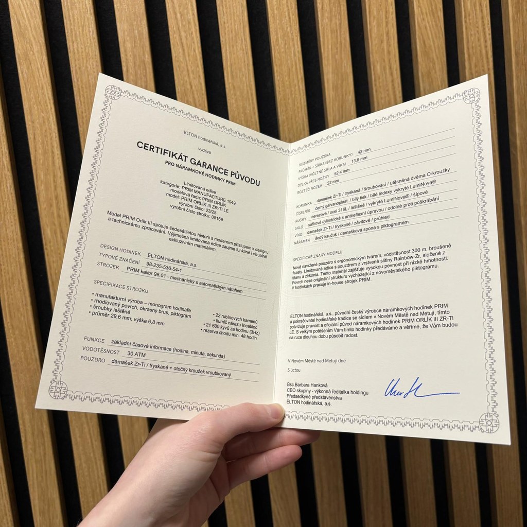 Šedesát let od vzniku ikonického modelu PRIM Orlík III Zr-Ti LE 98-235-536-54-1 přichází jeho třetí generace – moderní nástupce, který ctí historii, ale zároveň míří dál. PRIM Orlík III je robustní, přitom elegantní model navržený pro muže, kteří hledají funkčního a spolehlivého společníka.