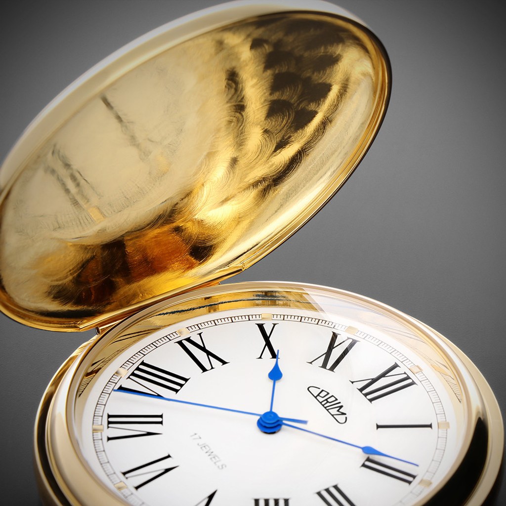 Klasické mechanické kapesní hodinky PRIM s ručním nátahem s římskymi číslicemi. Nově navržený plášť hodinek zdobí symbol českého znaku, tedy dvouocasý lev doplněný erbem, který se perfektně hodí k individualizaci monogramu. Hodinky jsou dodávány s nerezovým řetízkem.