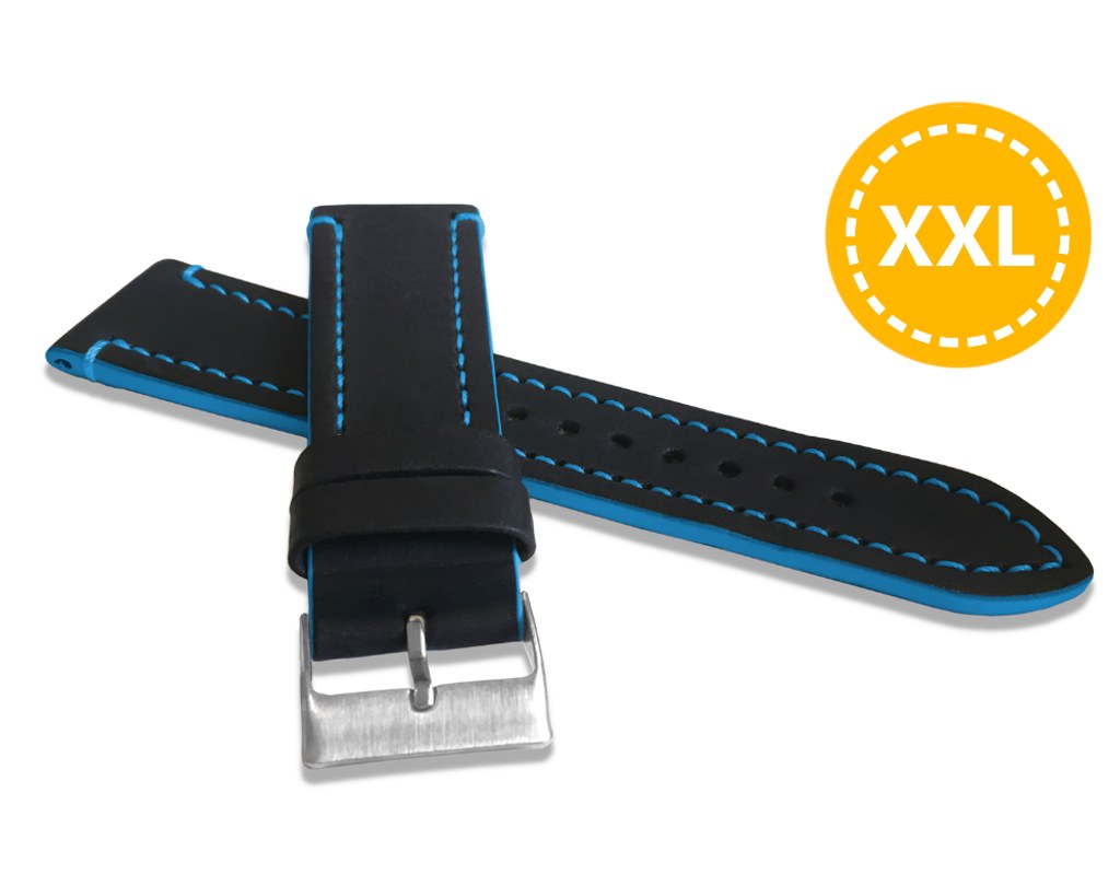 Prodloužený modře prošitý řemínek LAVVU TAILOR z luxusní kůže Top Grain - 20 XXL
