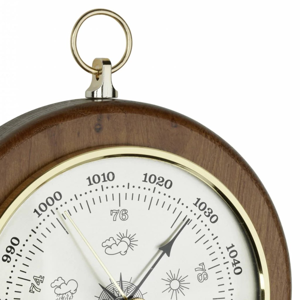Analogový barometr s tělem z masivního dubu určený k zavěšení. Ciferník barometru má průměr 108 mm. Technická specifikace