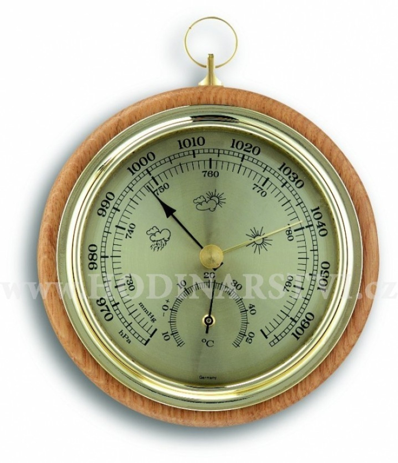 Barometr s teploměrem vyrobený z masivního bukového dřeva určený k zavěšení na stěnu. Průměr ciferníku je 108 mm. Technická specifikace