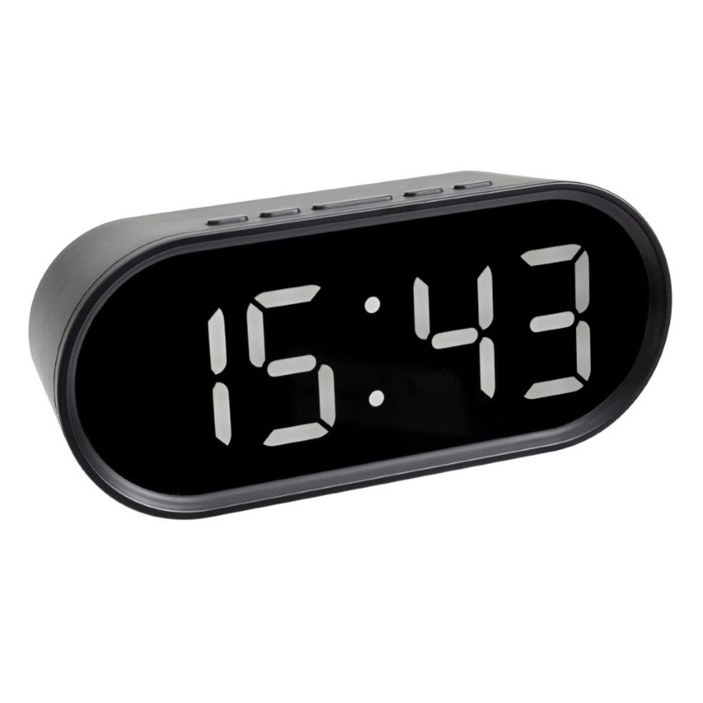- velké LED bílé číslice - napájení na baterie nebo pomocí USB kabelu - budík s volitelnou dobou odložení - zobrazení vnitřní teploty