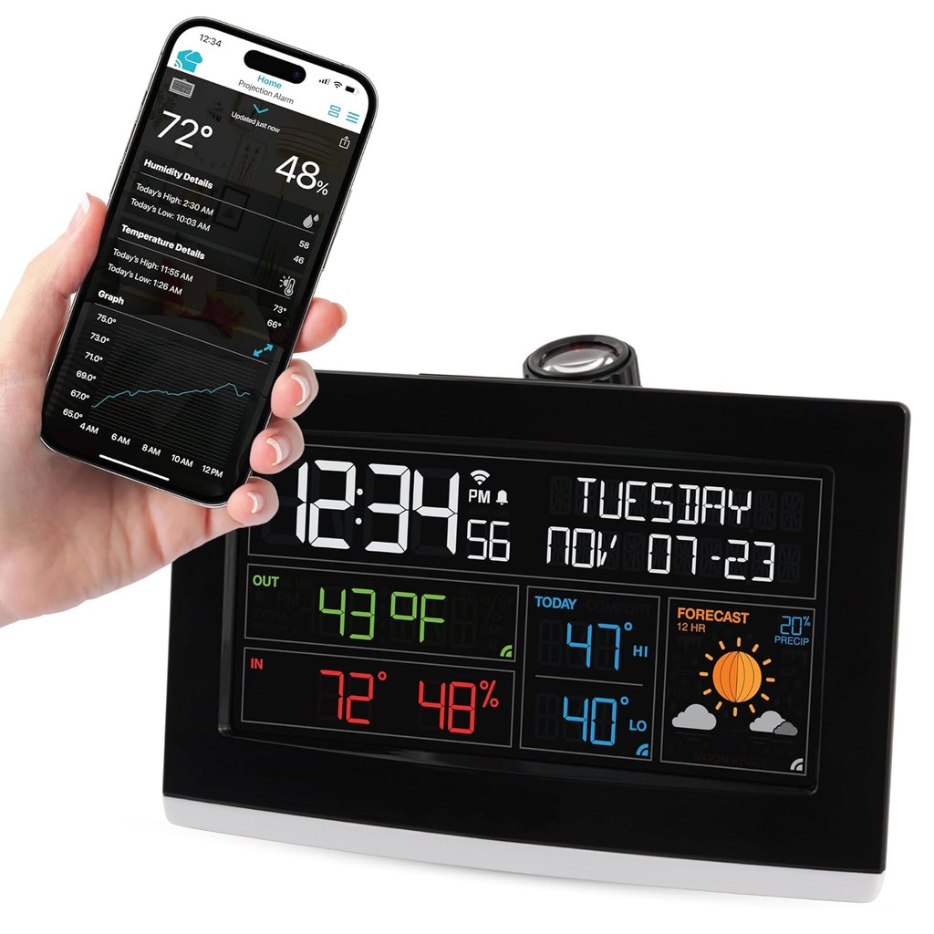 Všestranný projekční budík VIEW SHOW s wi-fi je kombinací projekčních hodin, budíku a měřiče vnitřního klimatu. Po připojení k internetu se také stane meteorologickou stanicí s profesionálními předpovědi z online meteorologické služby.