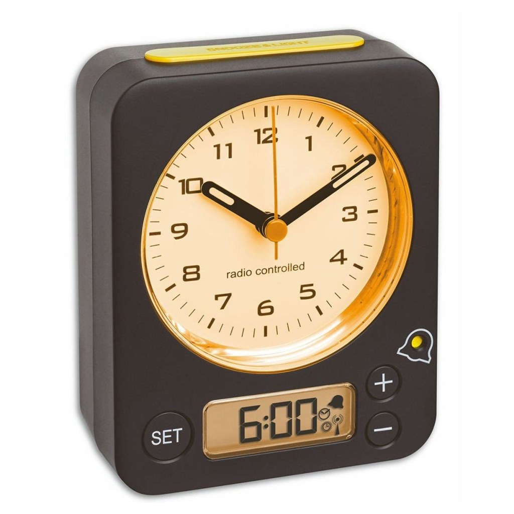 Pokud sháníte velký a jednoduše čitelný budík, pak je pro vás maxi-alarm TFA 60.1511.01.07 s analogovými hodinami a digitálním minidisplejem pro čas buzení ideální volbou. Rádiový signál DCF za vás vyřeší nastavení přesného času i přechod ze zimního na letní čas a naopak. Jeho masivní tělo pak odolá i nějaké té drobné havárii při ranním vstávání. Jde prostě o skvělého parťáka, se kterým už ráno nezaspíte!