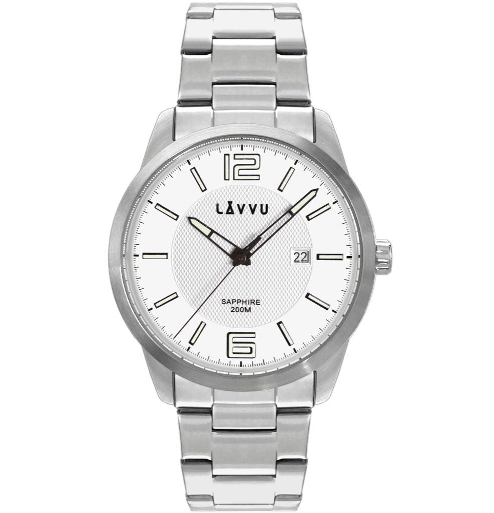 Výjimečně odolné hodinky z hypoalergenní nerezové oceli se stříbrným číselníkem a nadstandardní vodotěsností 200M do extrémních podmínek. Nepoškrabatelné průzračné safírové sklíčko. Vyměnitelný řemínek je možné zkrátit a přizpůsobit obvodu ruky.