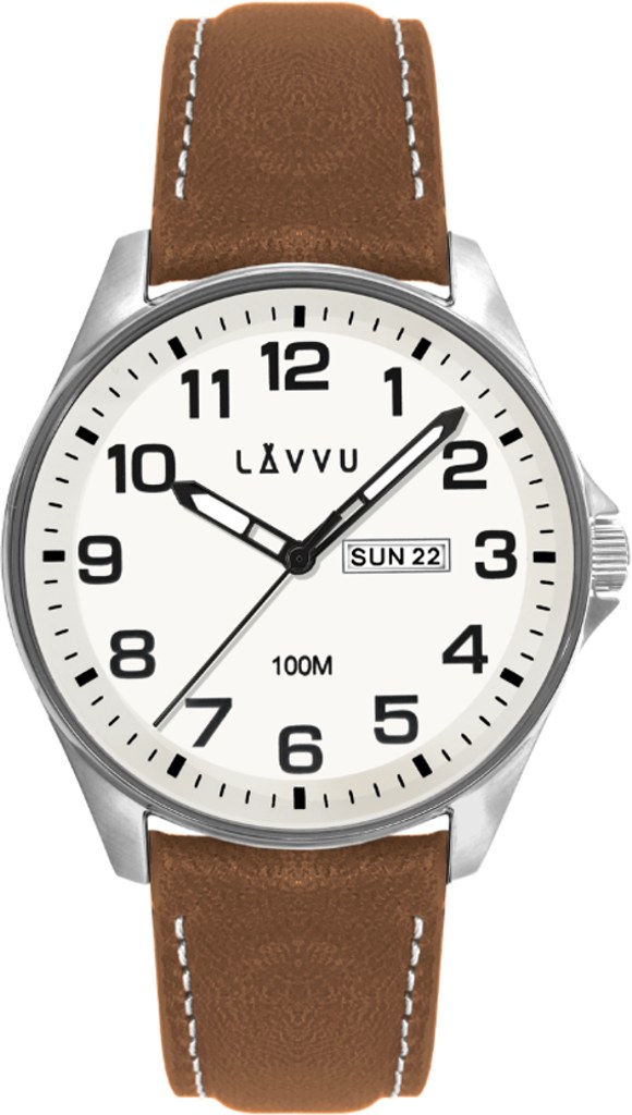 Ocelové pánské hodinky LAVVU LWM0143 BERGEN White / Top Grain Leather