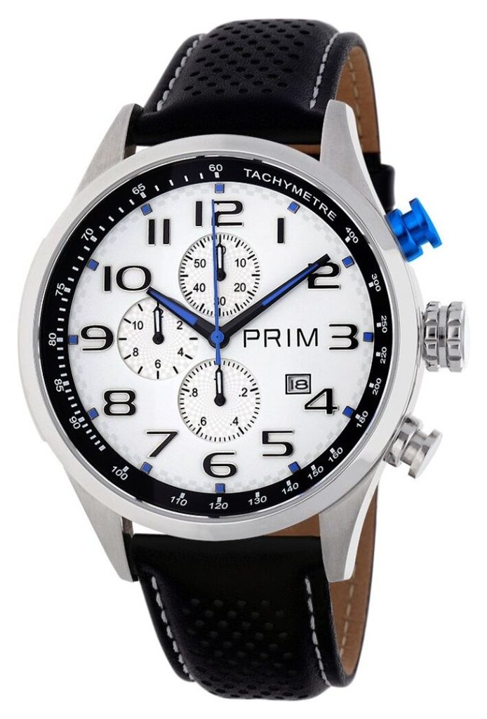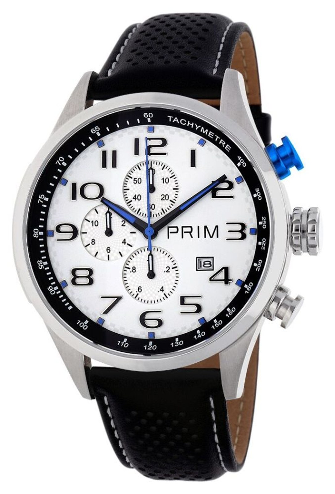 Nová sportovní edice pánských hodinek PRIM Racer Chronograph 2021. Pánové ocení velké pouzdro 45 mm, voděodolnost 10 ATM, safírové sklo a japonské super-lite ručičky.