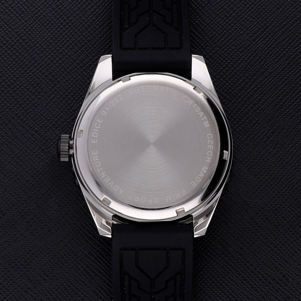 Jistotu, že tyto hodinky budou sloužit dlouhá léta, Vám dává jejich kvalitní provedení ze špičkové ušlechtilé oceli 316L, kvalitní safírové antireflexní a anti-touch sklo a osvědčený japonský kalibr 8315. Nový design pouzdra ve velikosti 45 mm s automatickým strojkem Miyota 8315. Černá varianta pouzdra je doplněná tmavým ciferníkem s výraznými indexy a černým datumovým věncem. Sportovci ocení šroubovací korunku, která zaručuje voděodolnost 10 ATM, což jejich ambasadoři testují v extrémních podmínkách svých sportovních aktivit. I díky šroubovací korunce a víčku pouzdra na závit můžete s tímto modelem skákat do vody a potápět se. Nově navržený ciferník s propracovanými prvky sportovního vzhledu zaujme každého sportovce. Na ciferníku jsou umístěné vystouplé indexy vyplněné lumini barvou. Na pozici 3 hodin je umístěno datumové okénko. Designéři navrhli sportovní ručky, které jsou pokryty japonskou super luminiscenční vrstvou pro lepší odpočet času za snížené viditelnosti. Hodinky jsou dodávány s kvalitním silikonovým řemínkem s překlápěcí sponou.