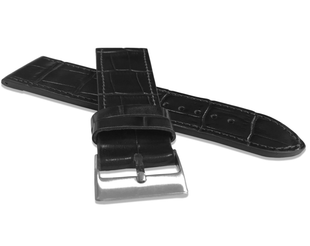 Černý prošitý řemínek LAVVU CROCO z luxusní kůže Top Grain - 24