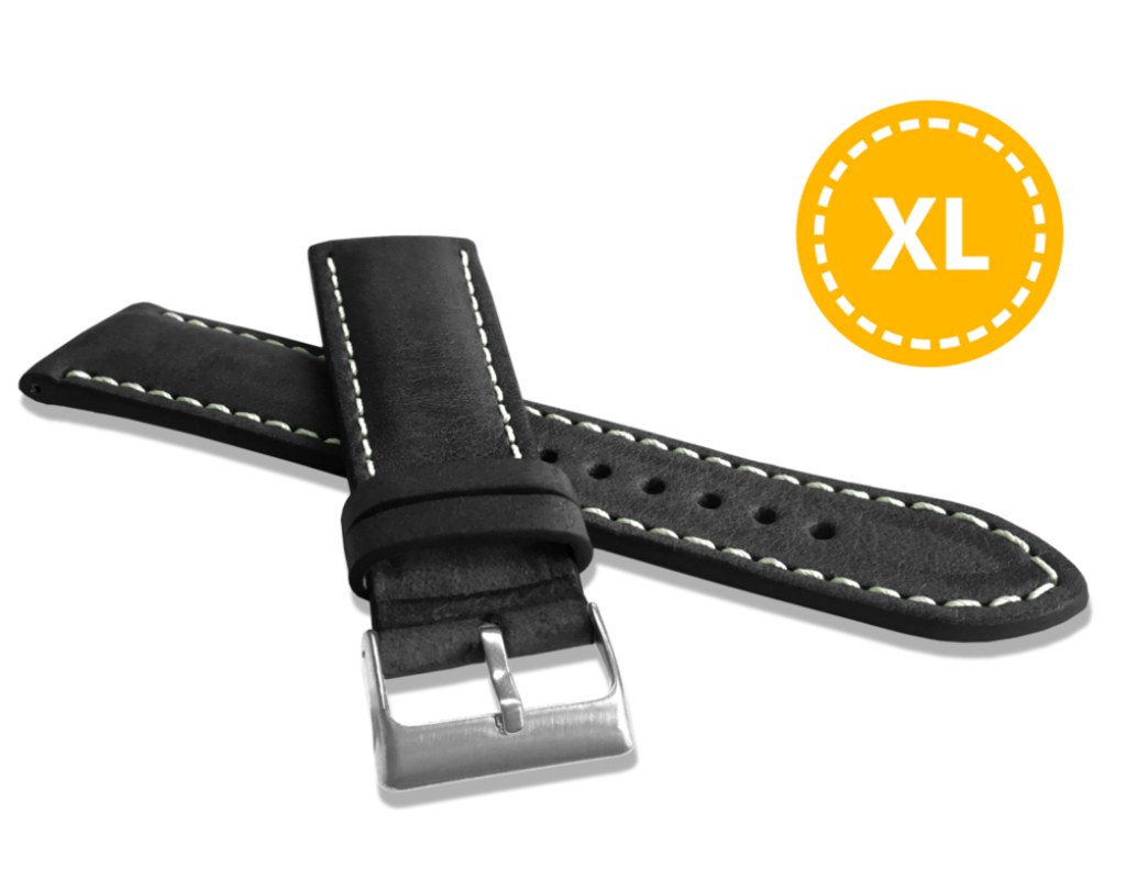 Prodloužený přírodně barevný černý řemínek LAVVU NATURE z luxusní kůže Top Grain - 20 XXL