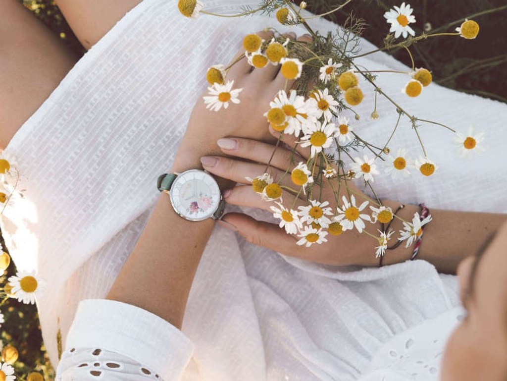 Tyto hodinky zaujmou především ciferníkem s květinovým vzorem, ve kterém naleznete něžné krystaly Swarovski. Budou skvělým společníkem ať už se vydáte kamkoliv.
