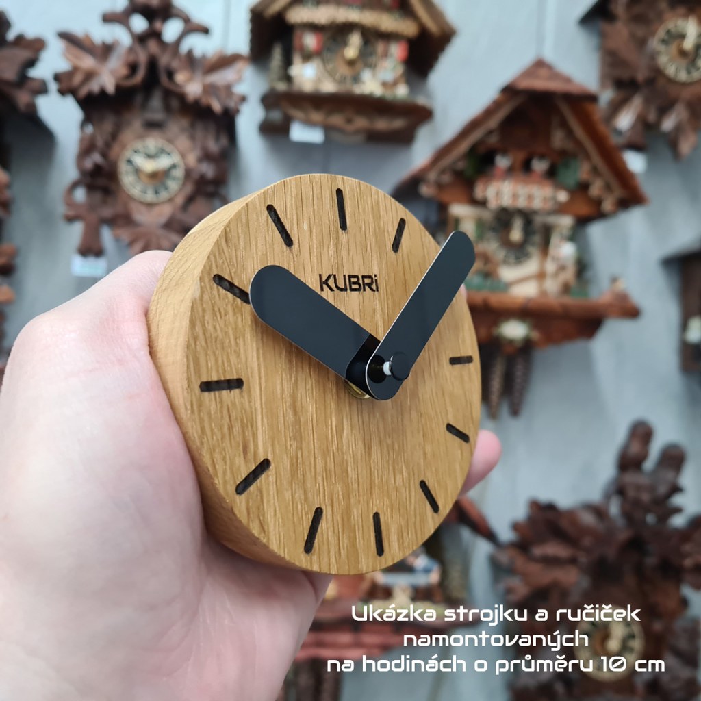 Délka ručiček od středu strojku: 4 cm (hodinová), 5 cm (minutová)