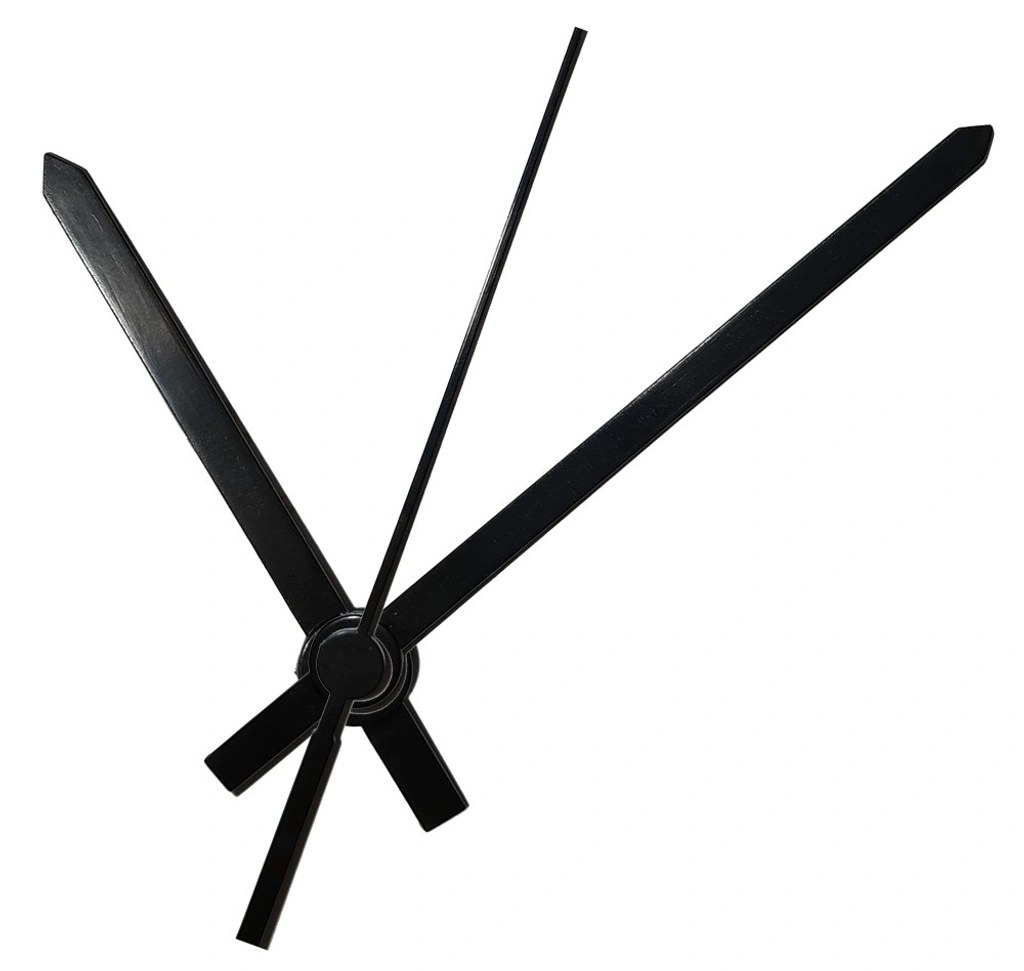 Délka ručiček od středu strojku: 6,5 cm (hodinová), 9 cm (minutová)
