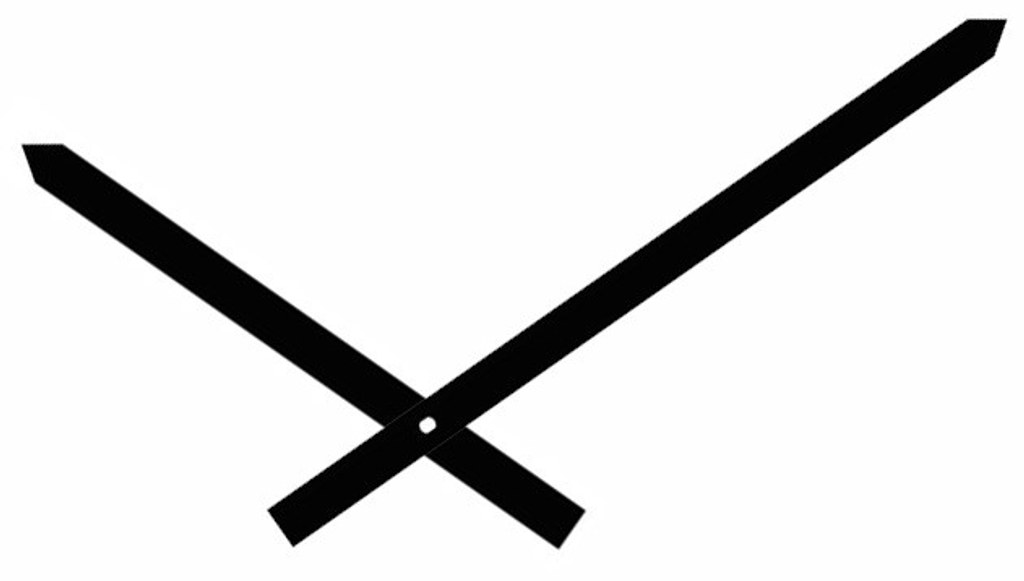 Rozměry ručiček (měřeno od středu strojku): 10,5 cm (hodinová - černá), 15 cm (minutová - černá)