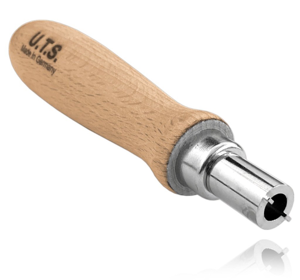 Speciální hodinářský utahovák slouží k upevnění centrálního fixačního šroubu, držícího hodinový strojek UTS a desku hodin pohromadě. Pasuje na všechny šrouby z německé dílny UTS. Díky tomu šroub nejen pohodlně utáhnete, ale také minimalizujete riziko poškození ciferníku.