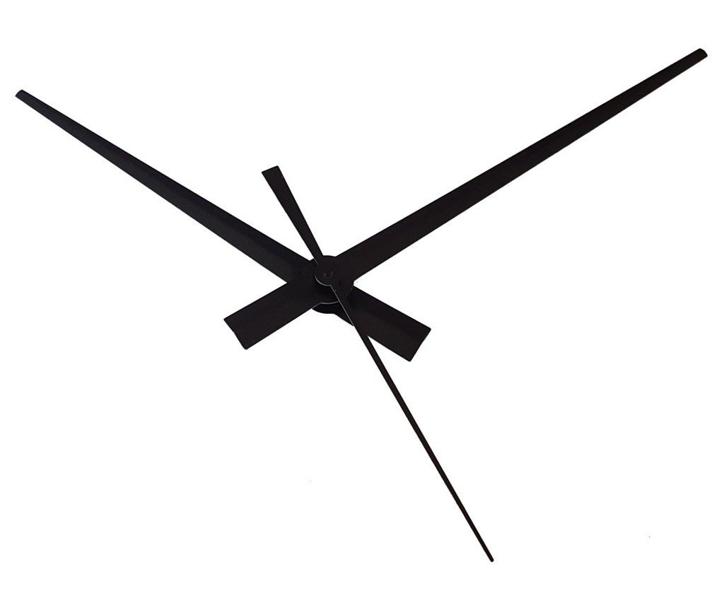 Rozměry ručiček OD STŘEDU STROJKU: 90 mm (hodinová - černá), 120 mm (minutová - černá), 70 mm (vteřinová - černá)