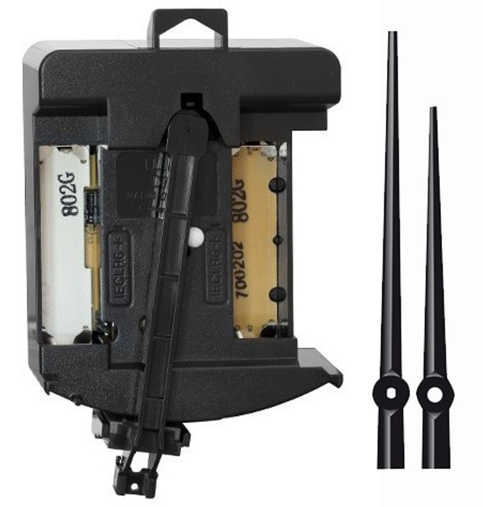Nejkvalitnější kyvadlový bateriový hodinový strojek řízený signálem DCF-77 Výrobce UTS Německo Plastové pouzdro Kovový úchyt součástí Rozměry 122 x 74 x 32 mm