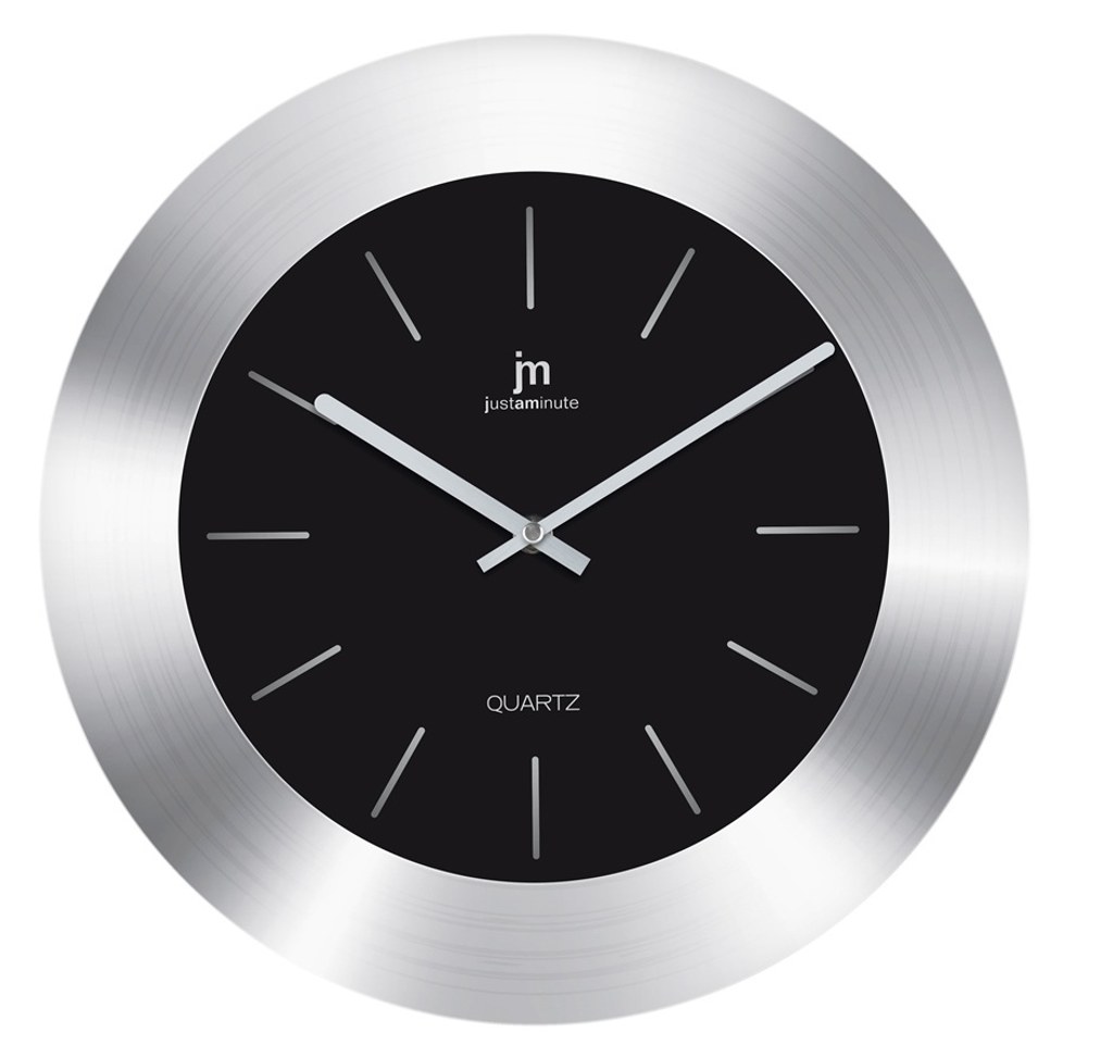 Designové hodiny v broušeném kovovém rámku.