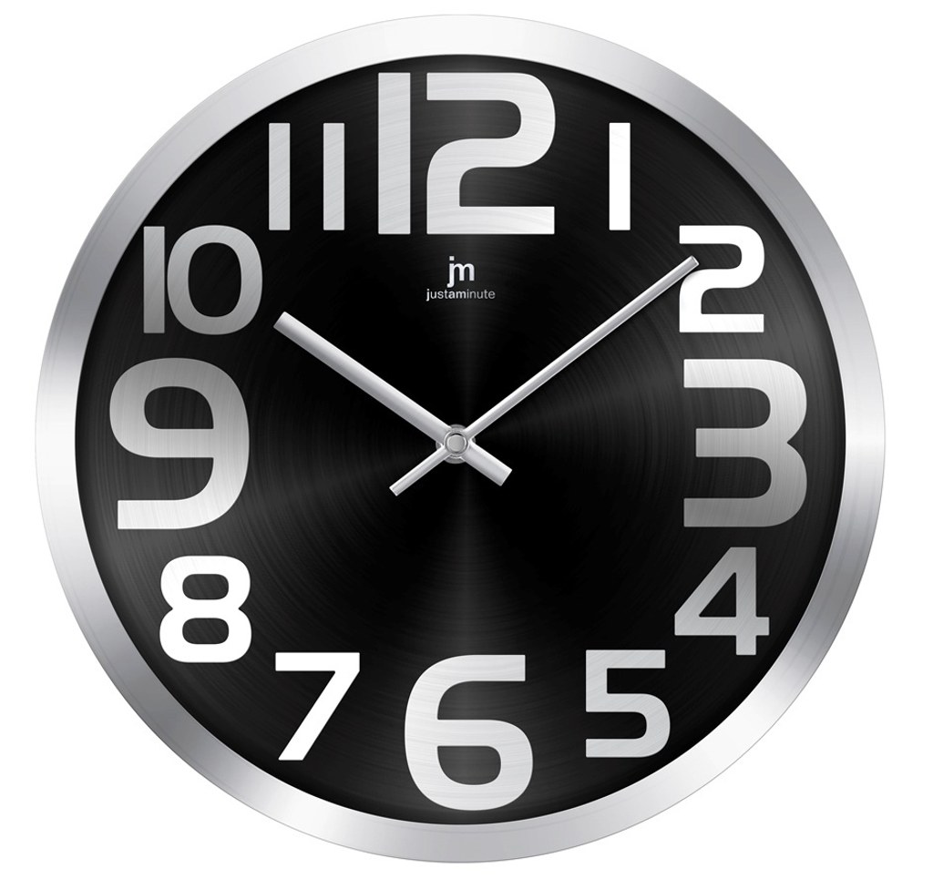 Designové hodiny v broušeném kovovém rámku.