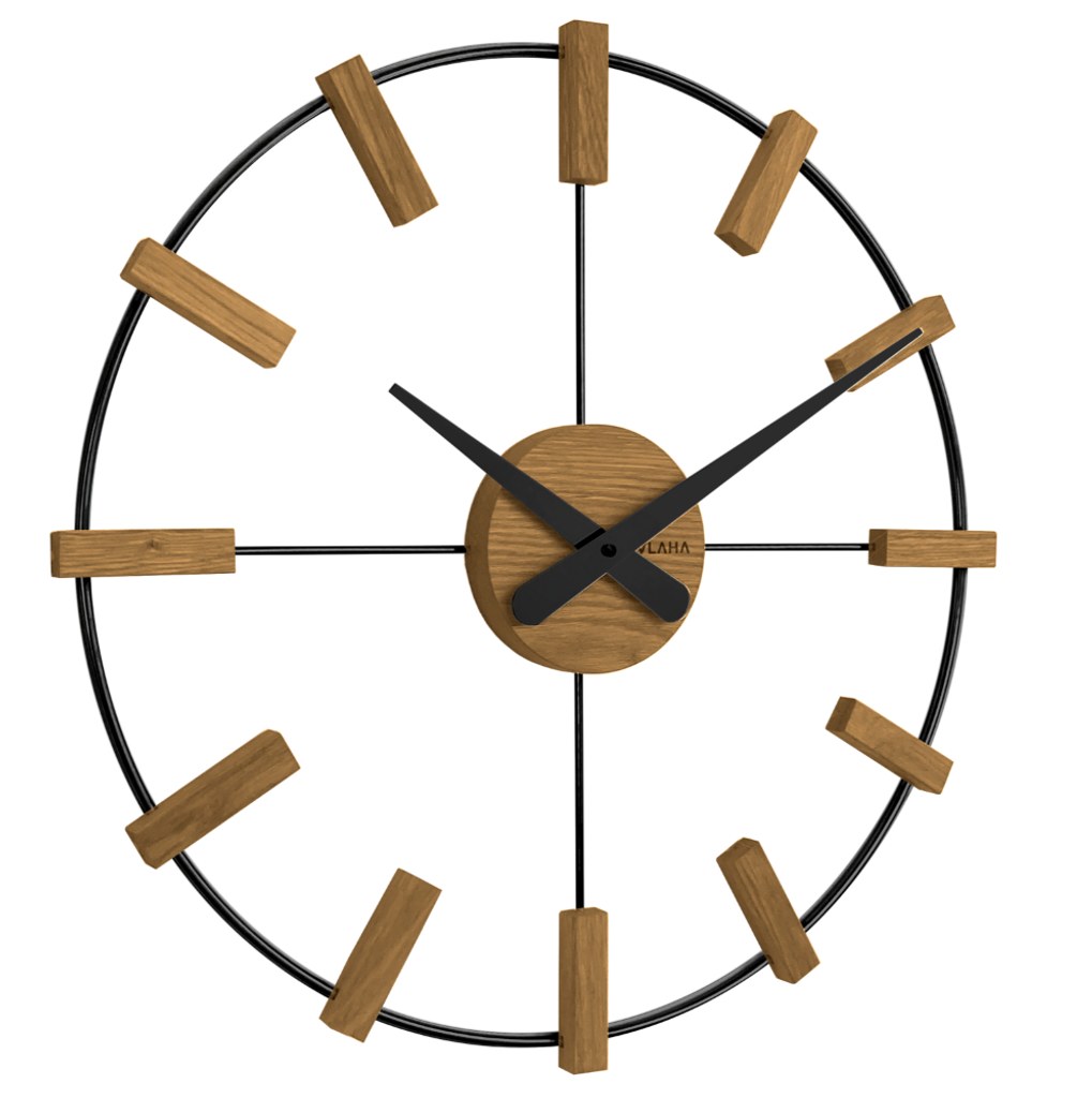 Materiál: dubové dřevo + kov Bateriový pohon Průměr hodin: 50 cm