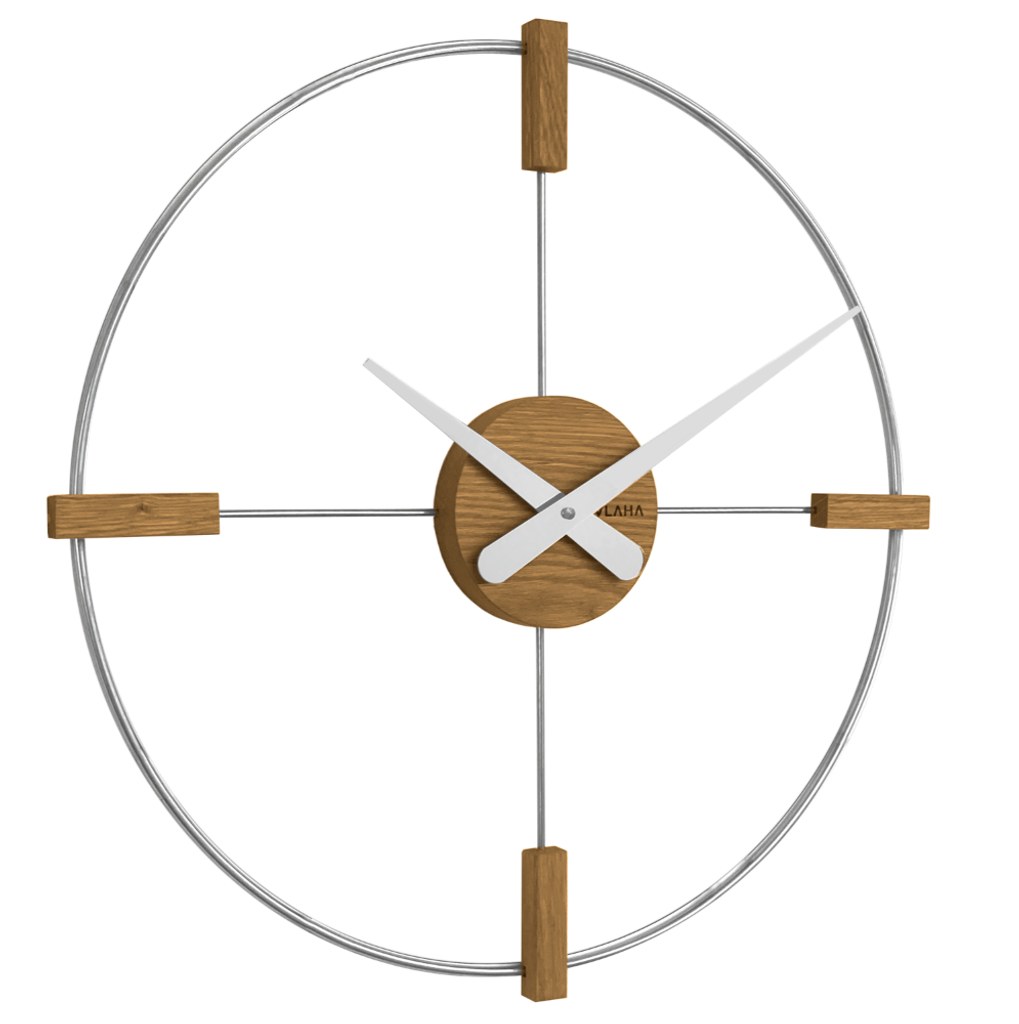 Materiál: dubové dřevo + kov Bateriový pohon Průměr hodin: 50 cm