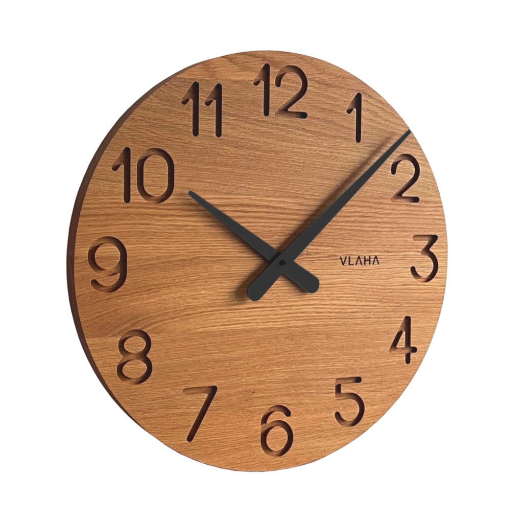 Vůně dubového dřeva a přírodních olejů se rozlije ve Vašem bytě, jakmile na stěnu pověsíte nové dřevěné hodiny VLAHA.