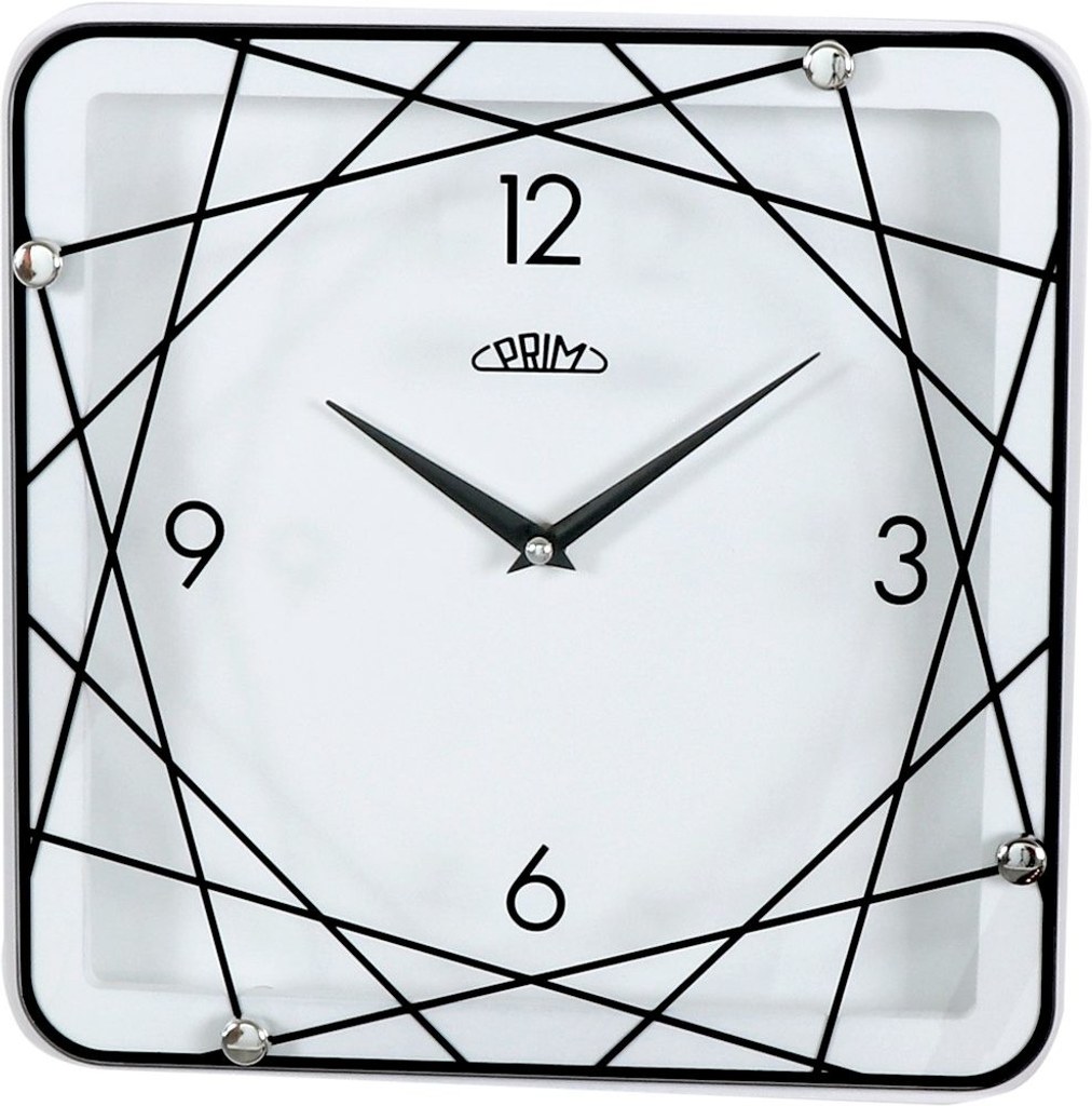 Originálně zpracované hodiny značky Prim upoutají každého příchozího do vašeho bytu, domu, či kanceláře. Materiál: Kov + sklo Kovové ručičky Bateriový pohon Rozměr hodin 29x29 cm