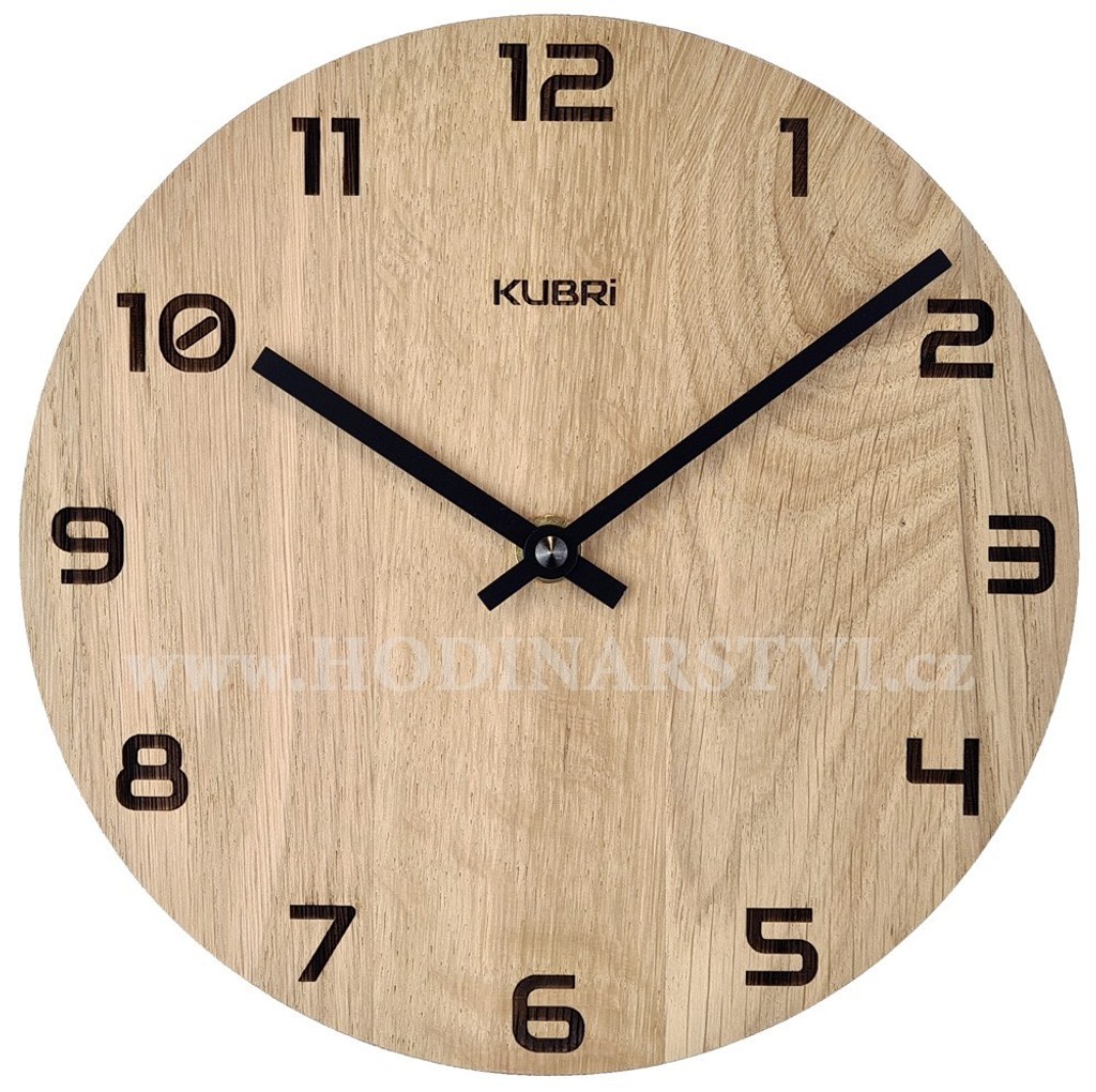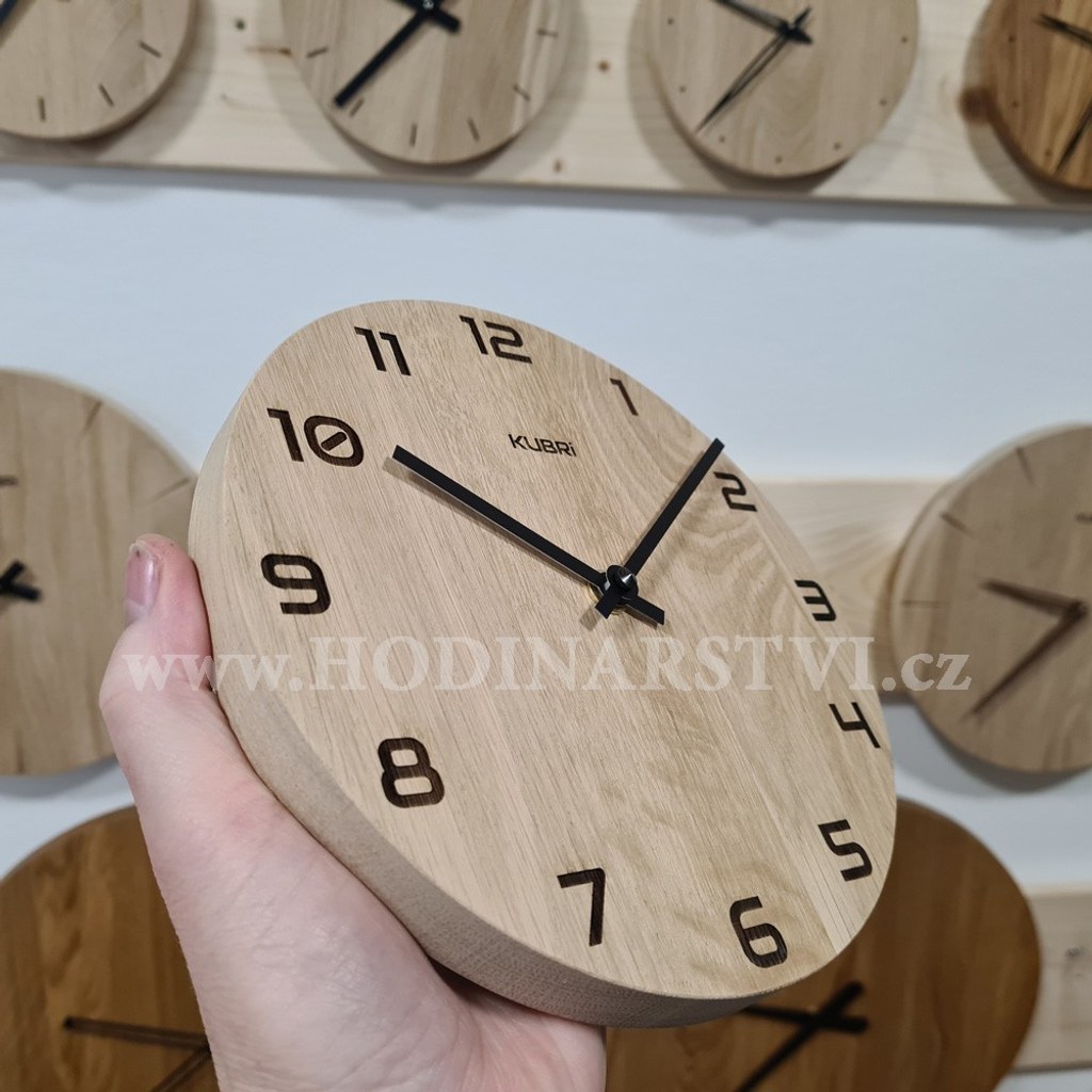 Lákají vás přírodní materiály? Chcete mít kousek přírody i u vás doma? Tak to budete nadšeni z nového modelu hodin KUBRi 0058A. Tyto hodiny jsou totiž vyrobeny výhradně z kvalitního materiálu. Tím je přírodní dub. Tato varinata je bez jakékoliv povrchové úpravy. Záleží tedy na Vás, zda si hodiny ponecháte "přírodně" nebo si je povrchově upravíte dle vlastní představy olejem, lakem či voskem... Tento typ klade důraz na výbornou čitelnost, která je podpořena výraznými černými čísly - ty jsou vygravírovány do hloubky 1 mm.