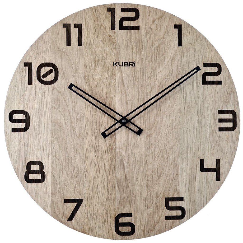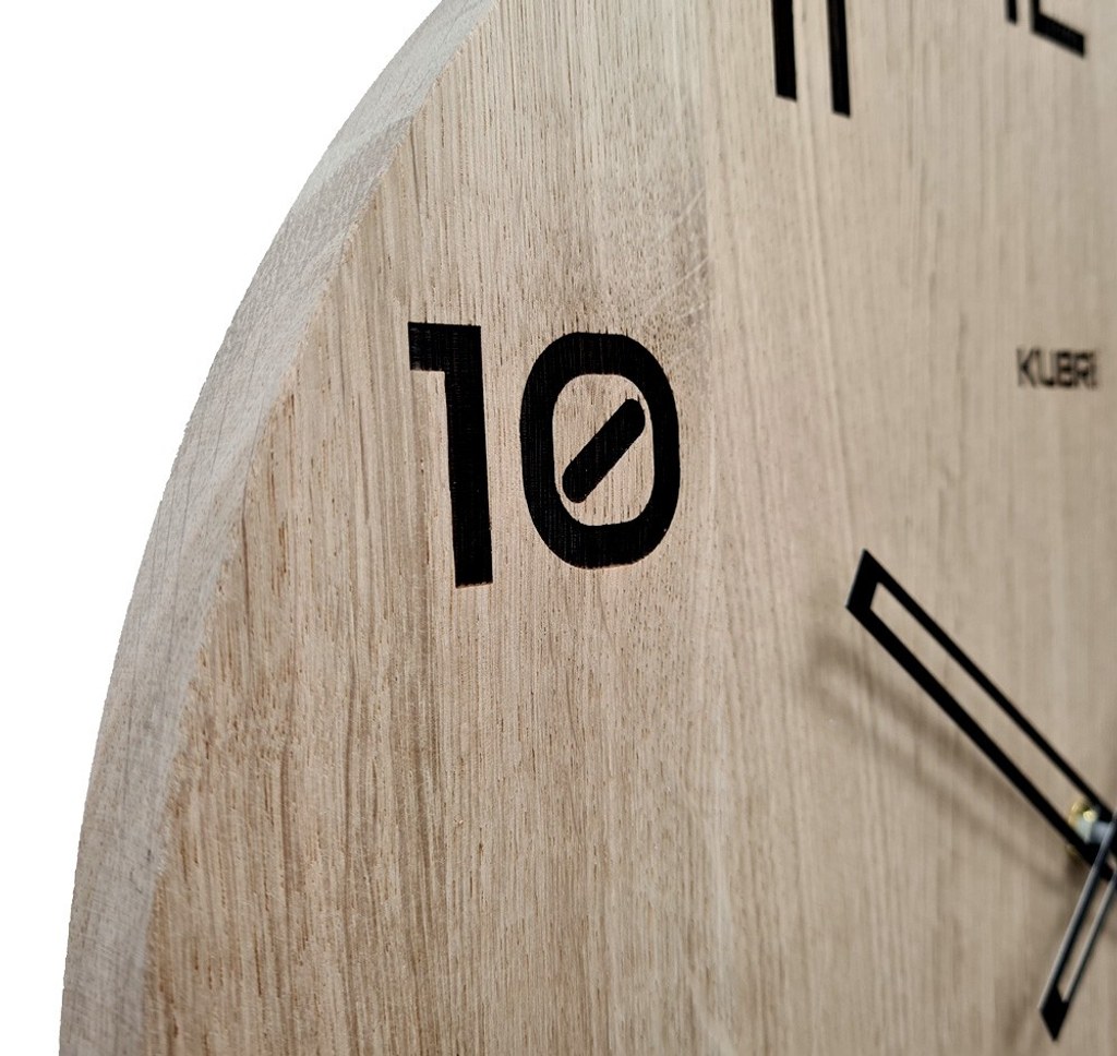 Masivní dřevo, robustní provedení, precizní zpracování a hlavně velký rozměr, to je nový model od značky KUBRi. Budete nadšeni z tohoto 44 cm velkého modelu KUBRi 0095. Tyto hodiny jsou totiž vyrobeny výhradně z kvalitního materiálu. Tím je přírodní dub. Tato varinata je bez jakékoliv povrchové úpravy. Záleží tedy na Vás, zda si hodiny ponecháte "přírodně" nebo si je povrchově upravíte dle vlastní představy olejem, lakem či voskem... Tento typ klade důraz na výbornou čitelnost, která je podpořena výraznými černými čísly - ty jsou vygravírovány do hloubky 1 mm.