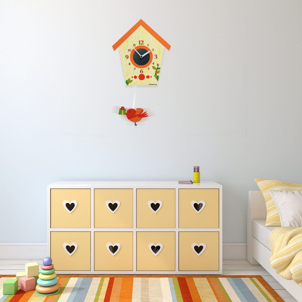 Tyto kukačkové hodiny s ptáčkem jsou skvělou dekorací do každého dětského pokojíku. Díky pohyblivému kyvadlu, poletuje ptáček ze strany na stranu a ožíví tím pokoj vašeho dítěte. Kukačky jsou vybaveny tichým chodem, takže vám dopřejí klidný spánek.