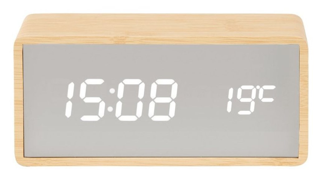 LED stolní hodiny s budíkem v imitaci bambusové dýhy.