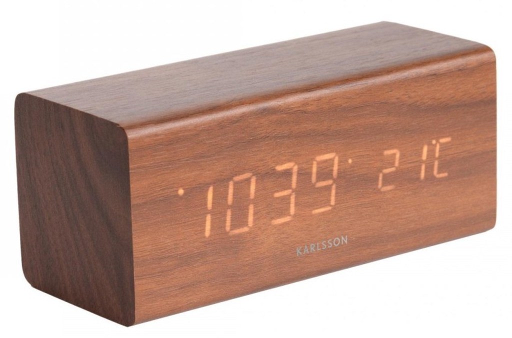 LED stolní hodiny s budíkem v imitaci dýhy v odstínu ořech.