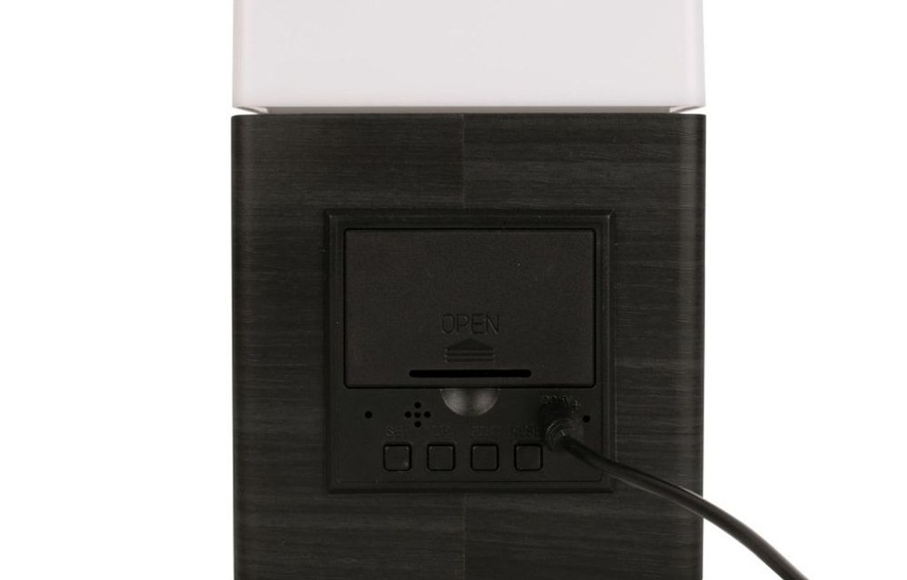 Rozměry: 16,5x10x10 cm (VxŠxH) Hodiny fungují na 3 baterie AAA (nejsou součástí balení) - pouze úsporný režim - svítí 15 sek. a pak znova reagují na klepnutí. Hodiny je možno napájet i přes USB (kabel i adapter jsou součástí balení) - trvalé svícení.