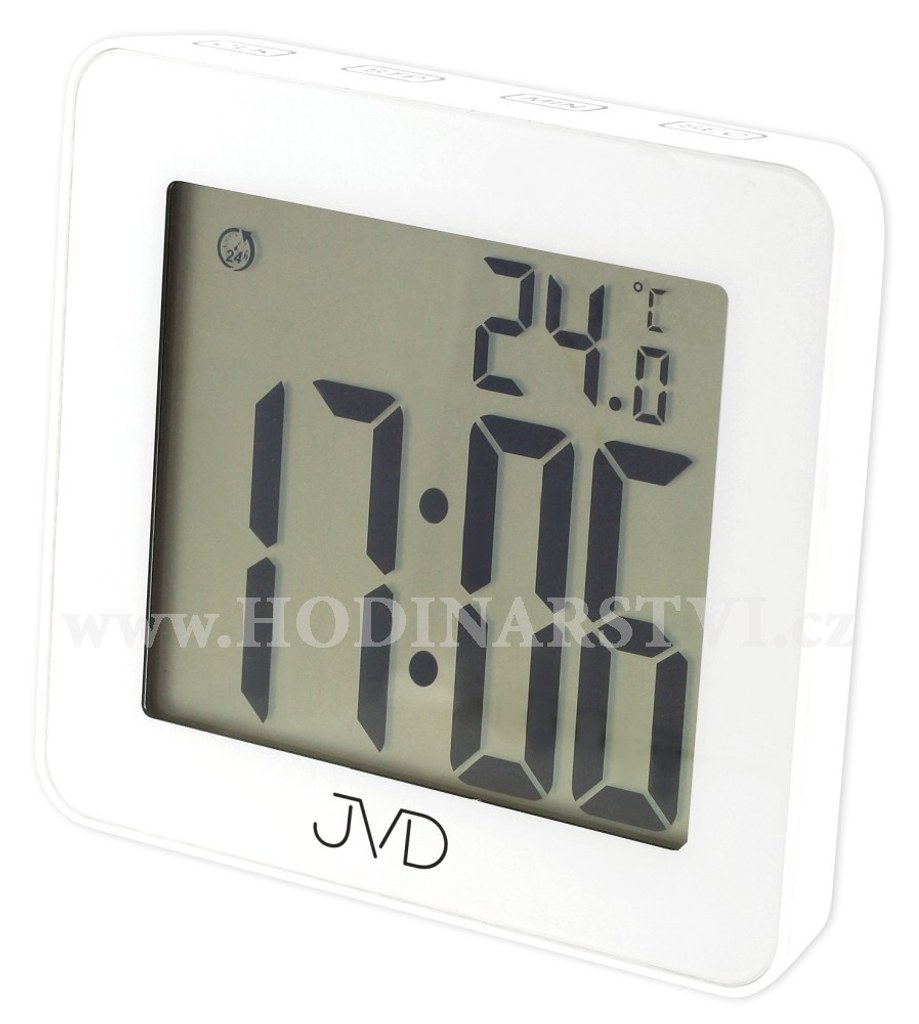 Tyto hodiny JVD jsou vhodné i do míst, kde je vyšší vzdušná vlhkost. Díky svému dobře izolovanému plastovému pouzdru nepropouští ke strojku žádnou vlhkost. Můžete si je dát třeba do kuchyně ,koupelny nebo k bazénu. Z jejich velmi dobře čitelného displeje vyčtete nejen čas, ale také okolní teplotu. Další praktické funkce jsou minutka (odpočet času), stopky nebo budík.