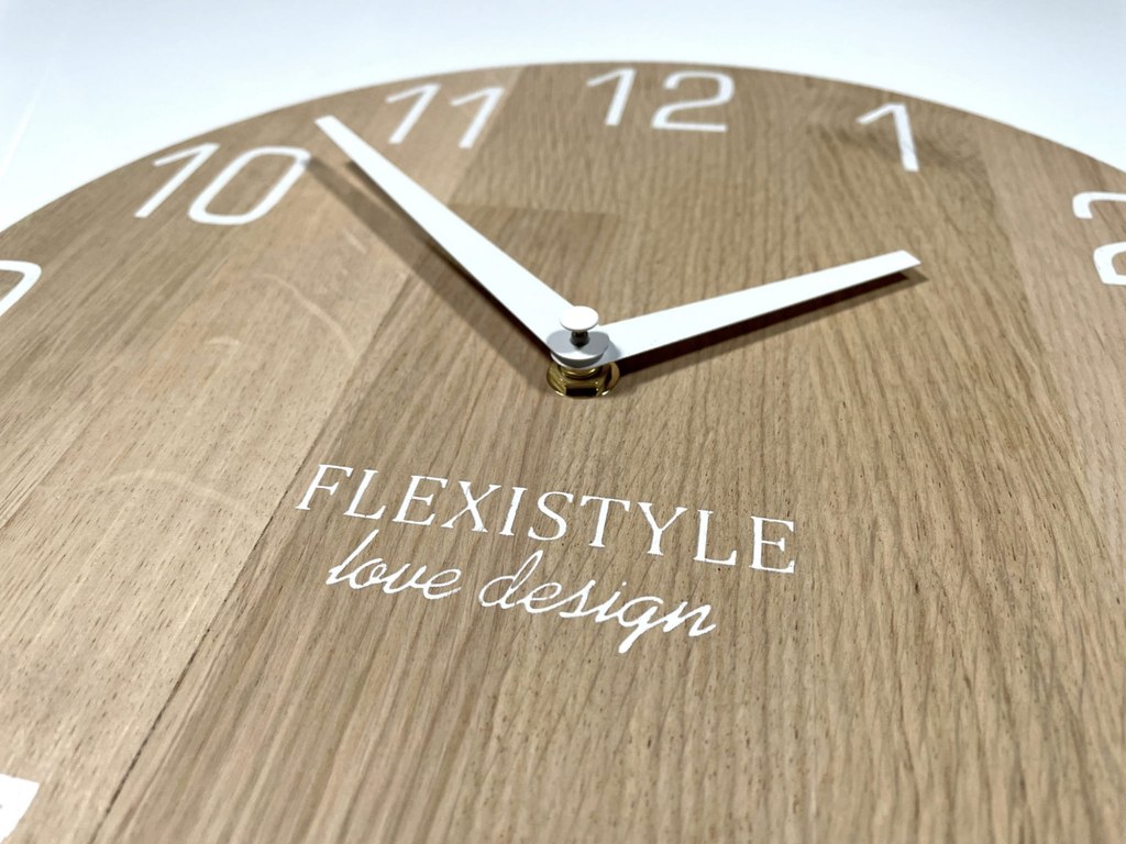 Nástěnné hodiny do obývacího pokoje jsou vyrobené výhradně z kvalitního evropského dubu. Tloušťka hodin je celých 20 mm. Na ciferníku je ponechán přírodní odstín dubu.