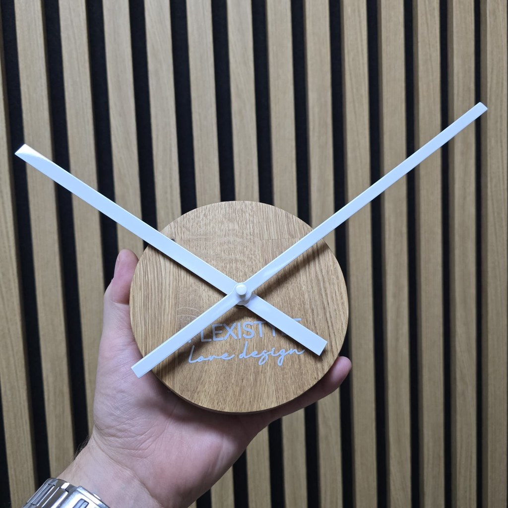 Dubové, nástěnné hodiny vyrobené s velkým důrazem na detail. Dřevěná dekorace je módním doplňkem moderního domova.